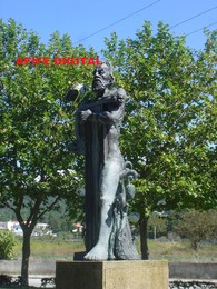 Não é que puseram o Orfeu de capacete, no jardim de Empostalha. |